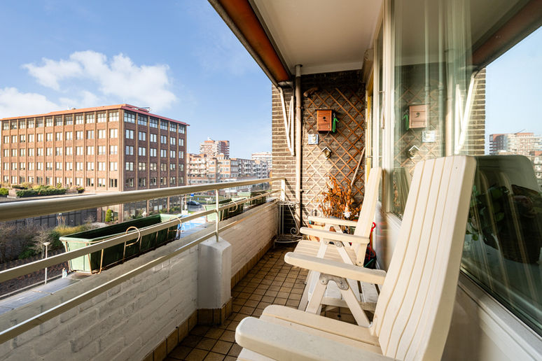 De L-vormige woonkamer biedt verrassend veel leefruimte met een aangrenzend balkon op het westen. De grote oppervlakte is ideaal om deels in te richten als werkkamer of een eetkamer.