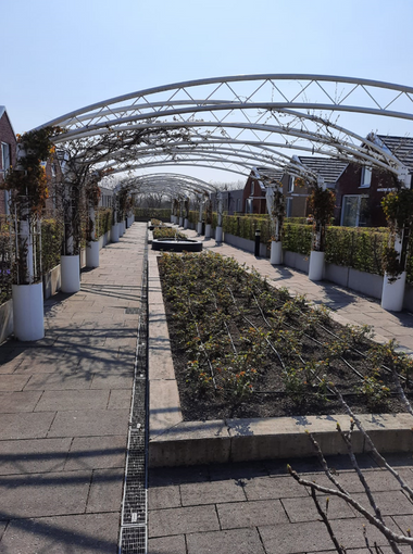 Op de bovenste etage is de gezamenlijke binnentuin (De Rozentuin) gelegen. Via deze fraaie buitenruimte zijn de verschillende appartementen bereikbaar.