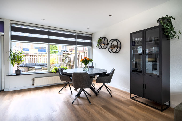 De begane grond is hedendaags, netjes afgewerkt en voorzien van een PVC vloer. De grote raamkozijnen aan de voor- en achterzijde én gunstige zonligging laat maximaal zonlicht binnenvallen. Aan de voorzijde een gezellige zithoek en eethoek aan de achterzijde met aangrenzende open keuken.