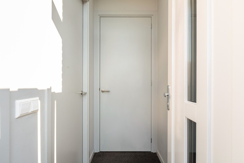 Vanuit de woonkamer toegang naar de achtergelegen slaapkamer met aangrenzende badkamer. De ruimtes kunnen verwarmd worden met een van de (elektrische) radiatoren en/of de airco installatie, volledig gasloos wonen!