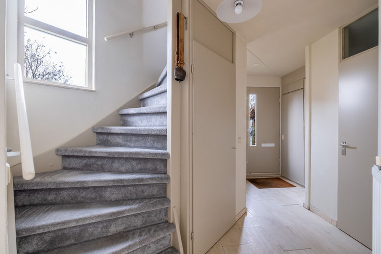 Via de entree komt u in de hal met meterkast, toilet, trapkast en trapopgang naar de eerste verdieping. Vanuit de hal loopt u door naar de lichte woonkamer met grote ramen aan zowel de voor- als achterzijde wat zorgt voor een aangename lichtinval.