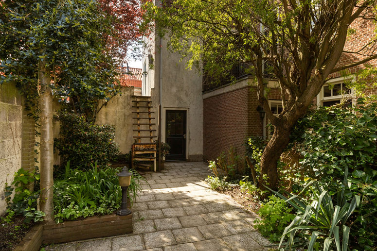 De keuken in hoekopstelling beschikt over bovenkasten, koelkast, afzuiging, spoelbak en gaskookplaat. Het dakterras van circa 5 x 2,6 meter groot maakt de buitenruimte verrassend toegankelijk voor een living op de eerste verdieping. Vanaf het dakterras is namelijk ook de stadstuin rechtstreeks bereikbaar middels een trap.