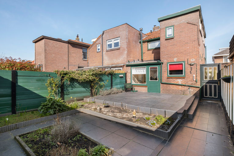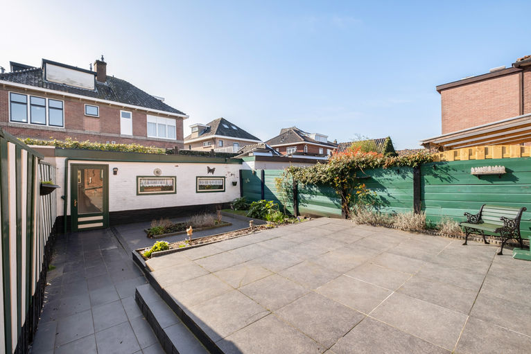 De achtertuin is buitenom bereikbaar via de zijtuin en afsluitbaar met een poortdeur. De achtertuin heeft een royale afmeting van ruim 10 bij 6 meter en achterin een stenen berging van ruim 6 meter.