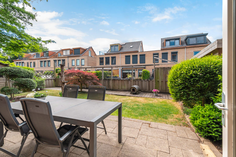 De royale zonnige achtertuin is bereikbaar vanuit de woonkamer, de naastgelegen bijkeuken en het zijpad van de woning. Een ruime achtertuin van circa 12 bij 8 meter met een ligging op het westen. De zijtuin van meer dan 2 meter breed met een extra berging geeft tevens toegang naar de voortuin.