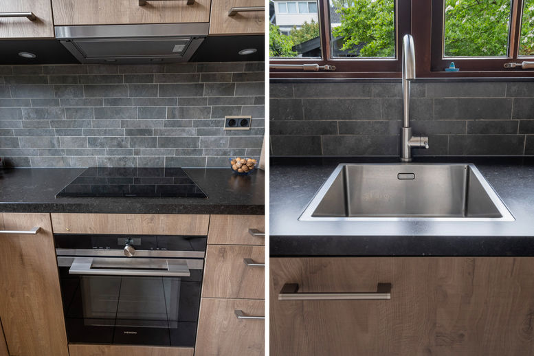De open keuken is in 2017 vernieuwd en uitgerust met afzuigkap, spoelbak en diverse (Siemens) inbouwapparatuur te weten; koelkast, vriezer, combi magnetron en inductie kookplaat.